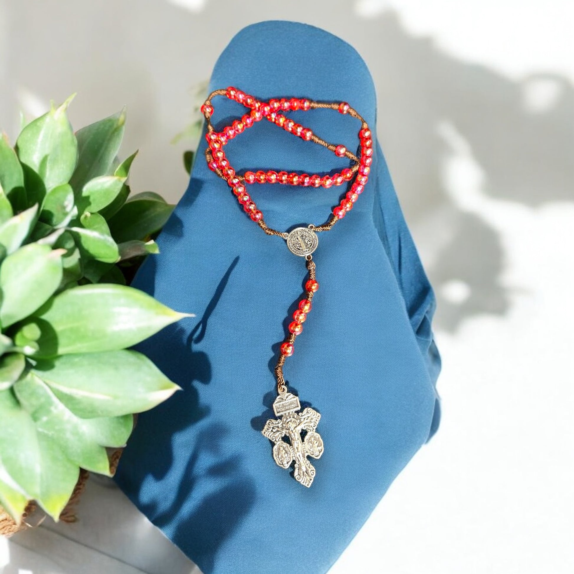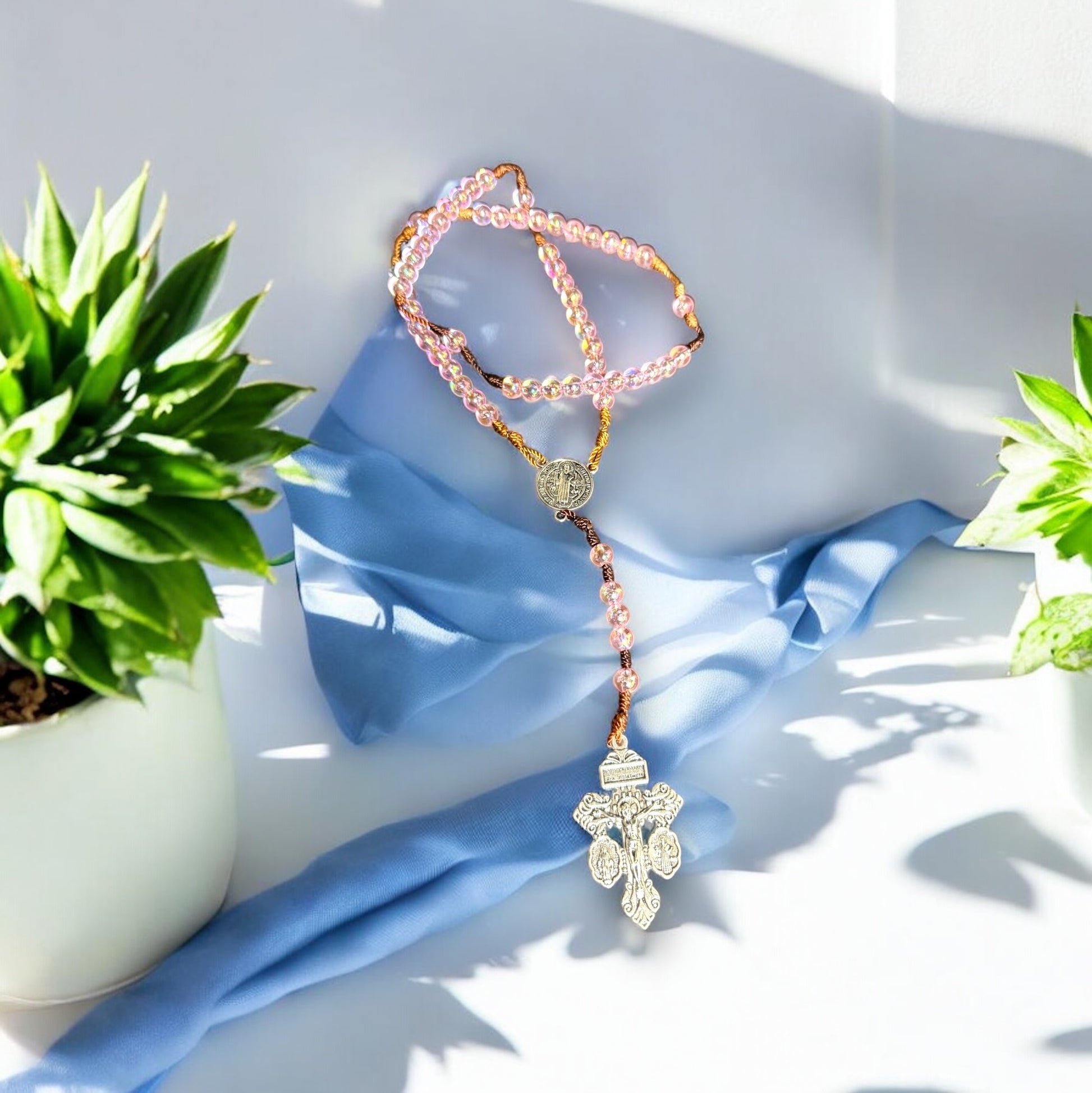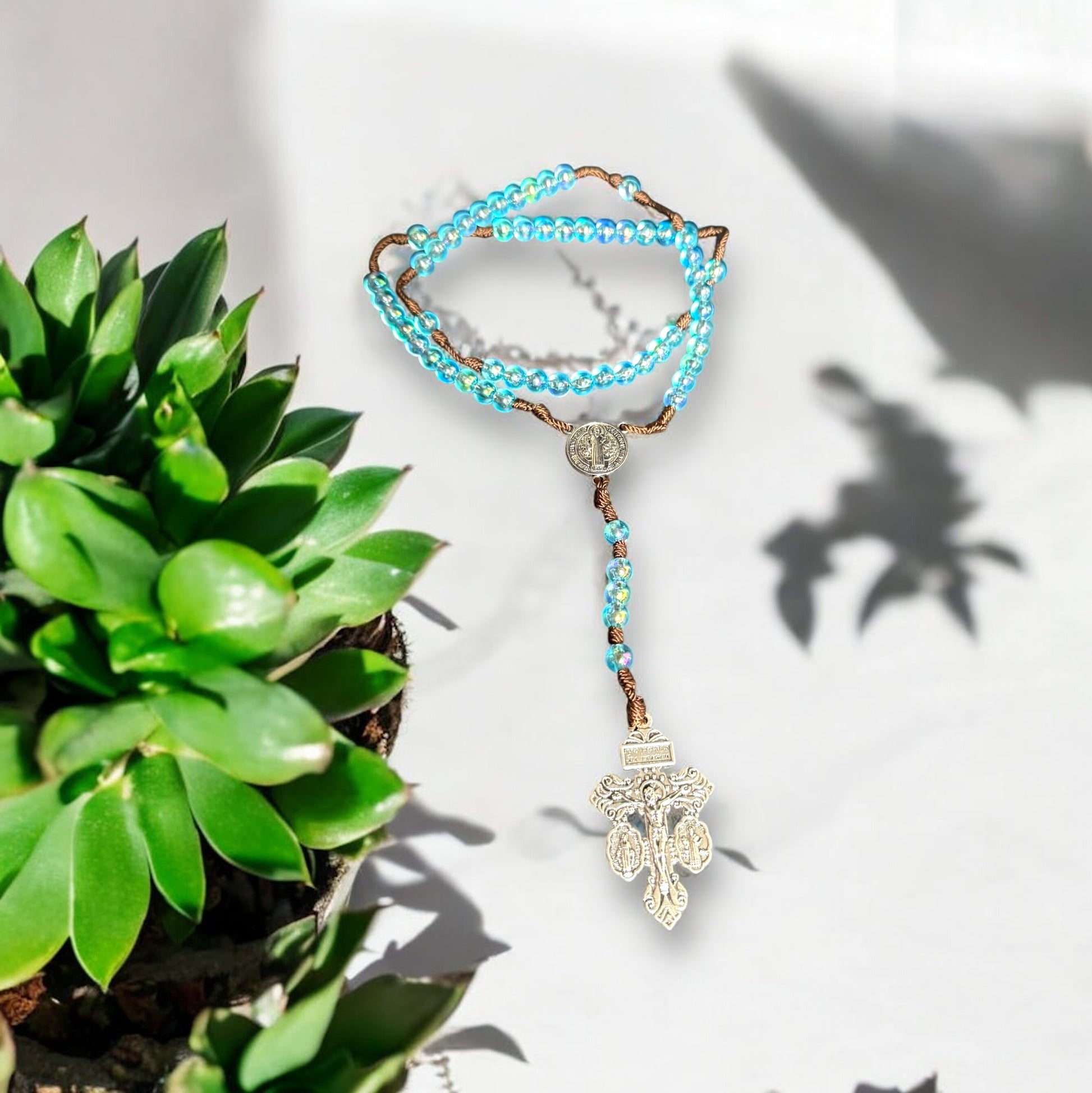 🌞 Rosario de Verano Unisex – Cruz del Perdón y Centro de San Benito en Rodio (8 mm) 🌊