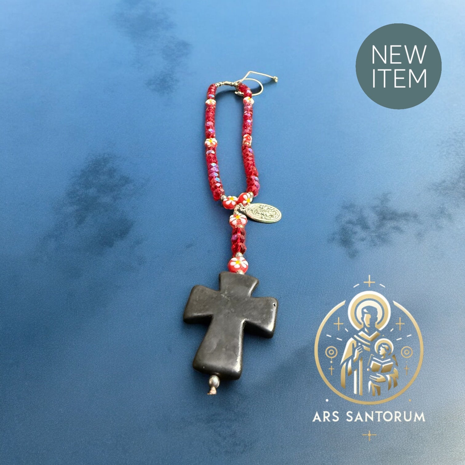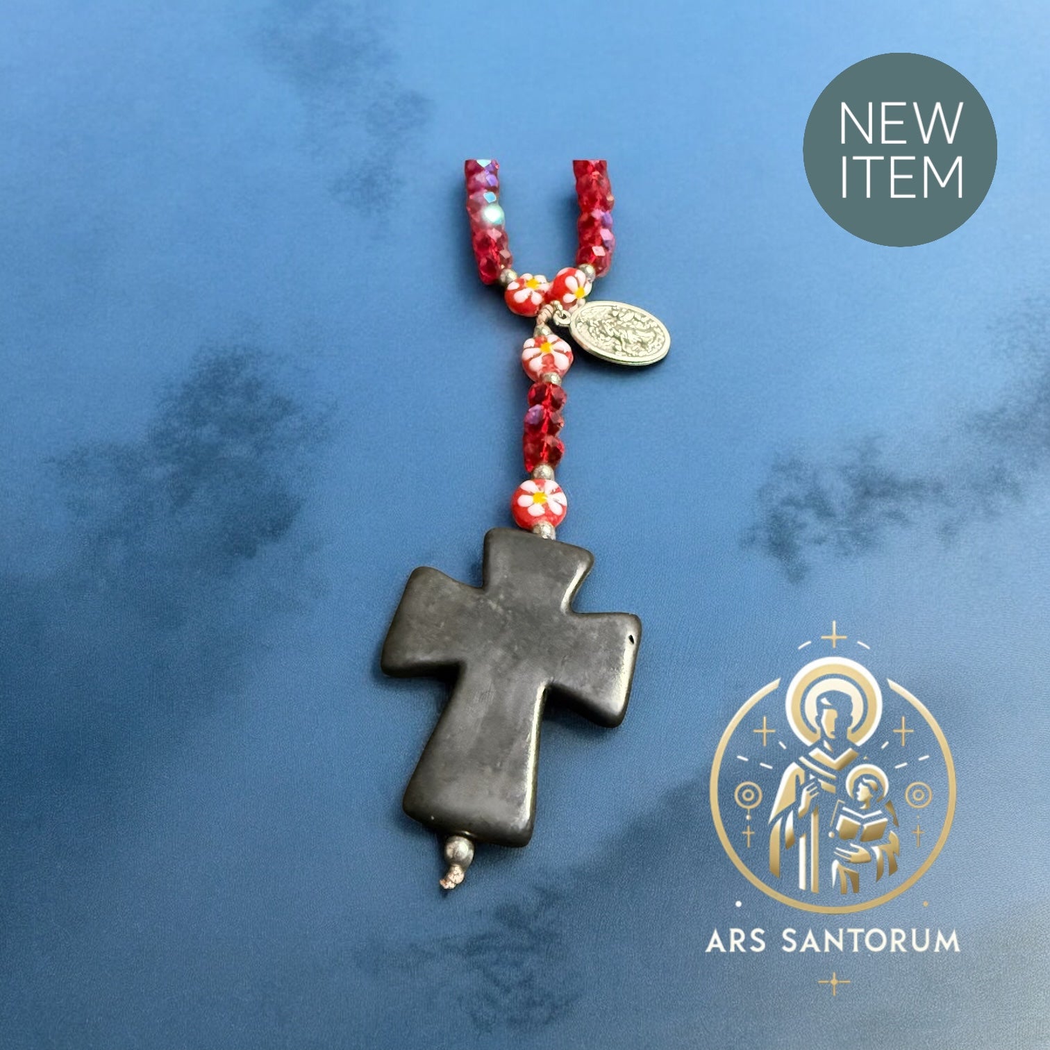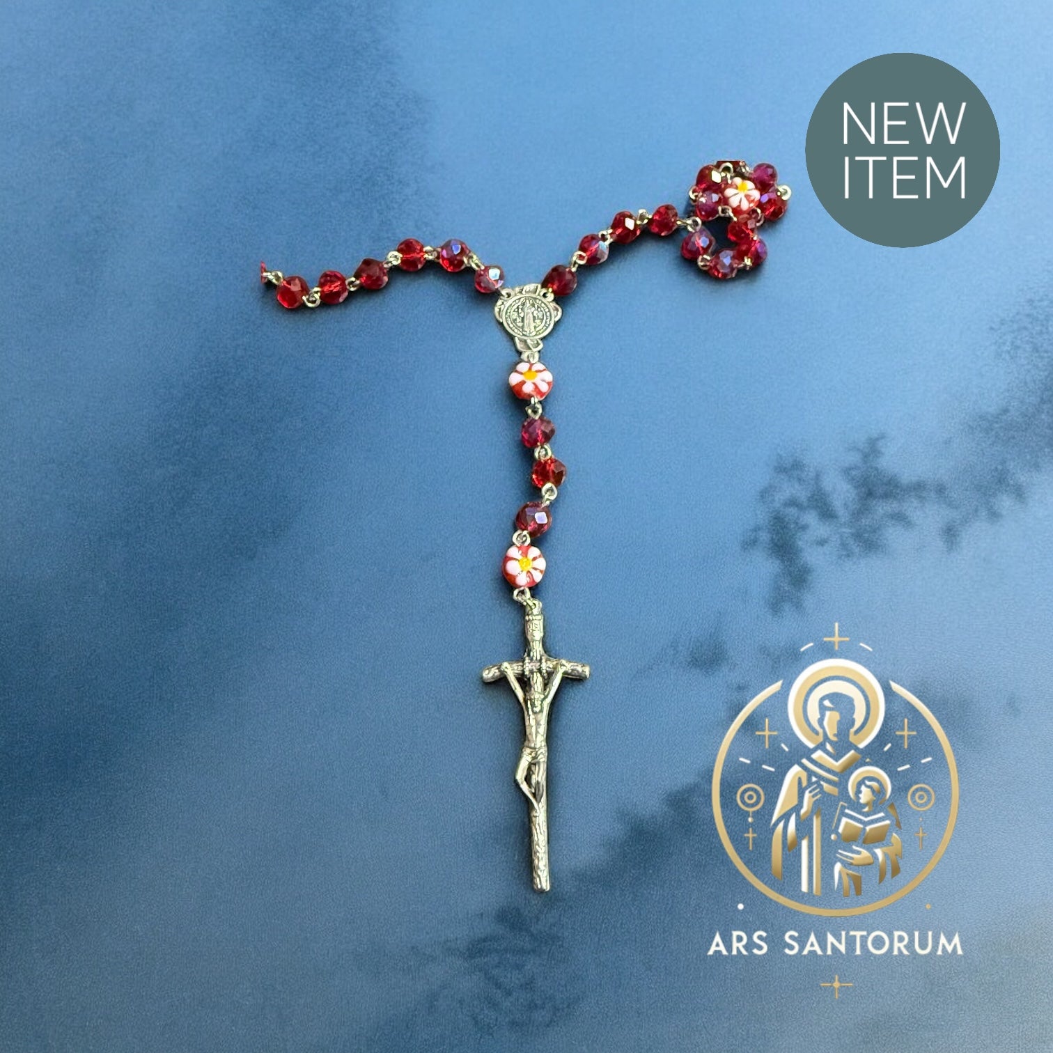 Rosario floral con piedras en cristal checo en un rojo brillante y medalla de la Virgen desata Nudos. Hermoso con un significado espiritual y protección, perfecto para cualquier devoto y para adornar tu día con elegancia y fe.