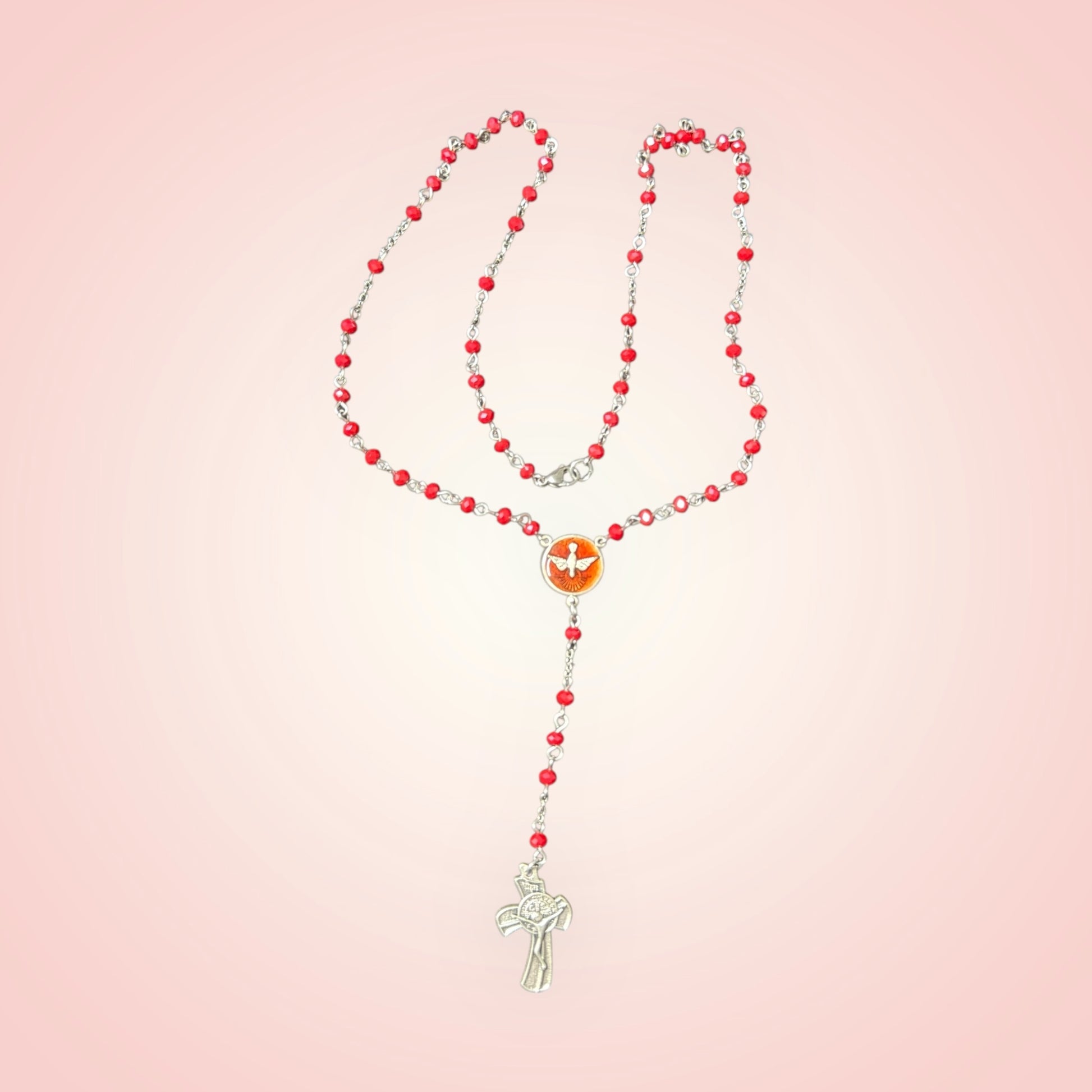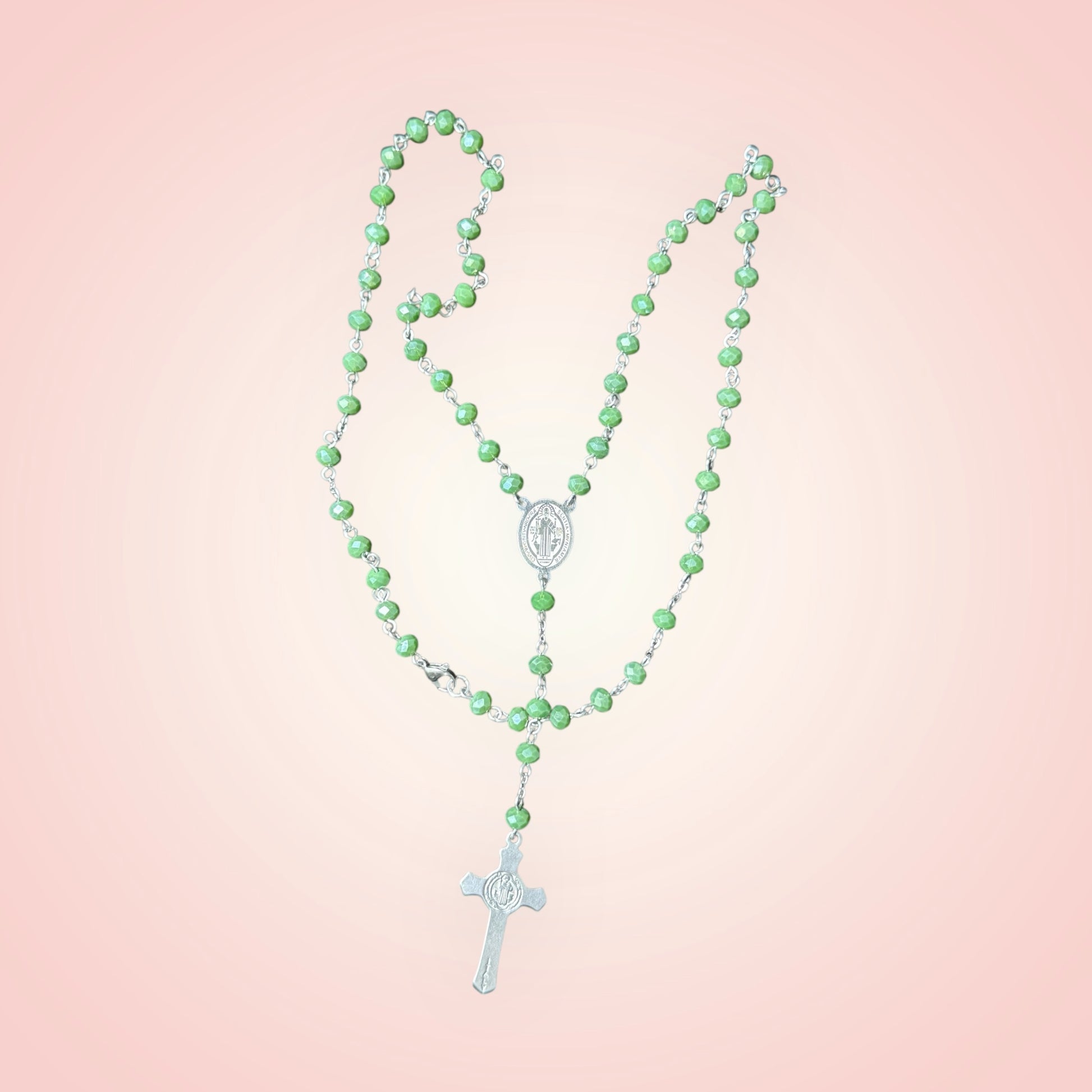 Este conjunto de rosarios presenta elegantes piedras de 6mm y un centro de espíritu Santo de 4mm, con una cruz de san Benito. Disponible en diversos colores y estilos para una experiencia personalizada. Una adición devota y refinada a cualquier colección de rosarios.